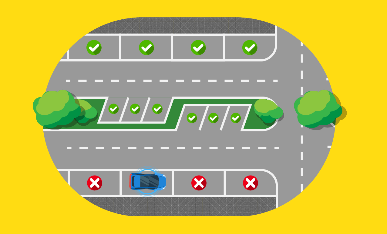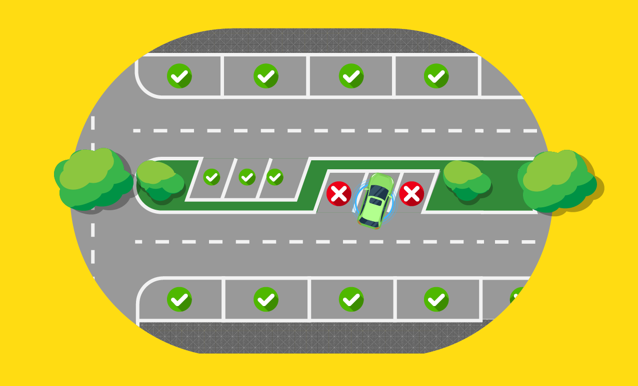 - Procure uma vaga do lado oposto da via ou em outra esquina.