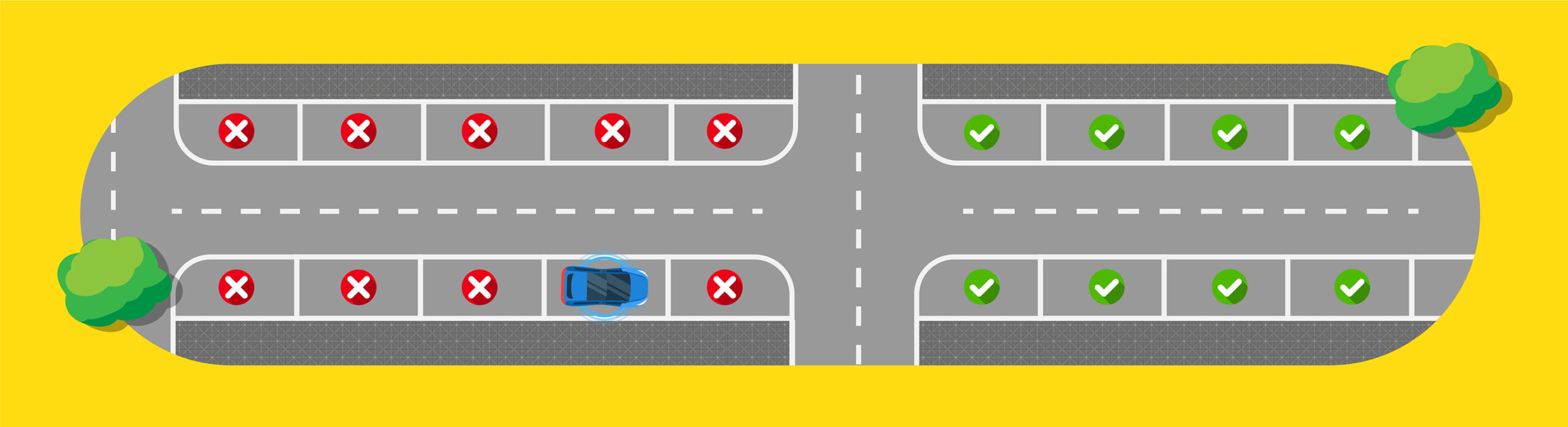 Quando estacionado na avenida, procure uma vaga no lado oposto.